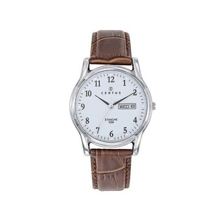 MONTRE CERTUS HOMME BRACELET CUIR MARRON FACON CROCO DATEUR A 3H