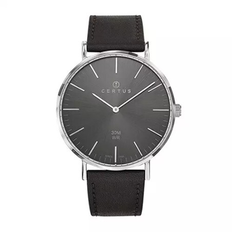 MONTRE CERTUS HOMME BRACELET CUIR NOIR CADRAN GRIS ARDOISE