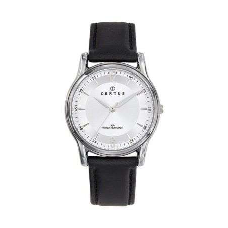 MONTRE CERTUS HOMME BRACELET CUIR NOIR CADRAN GRIS SOLEILLE