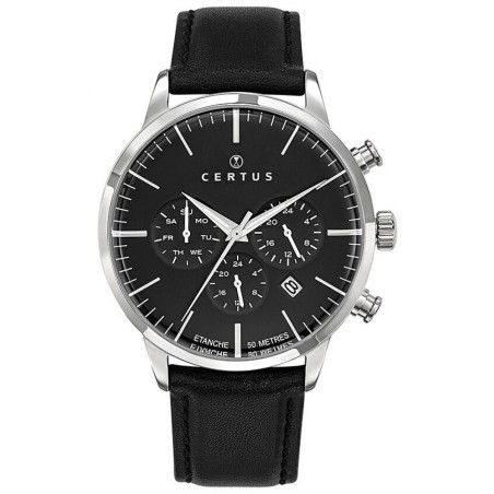 MONTRE CERTUS HOMME BRACELET CUIR NOIR CADRAN NOIR DATEUR ET CHRONOGRAPHES