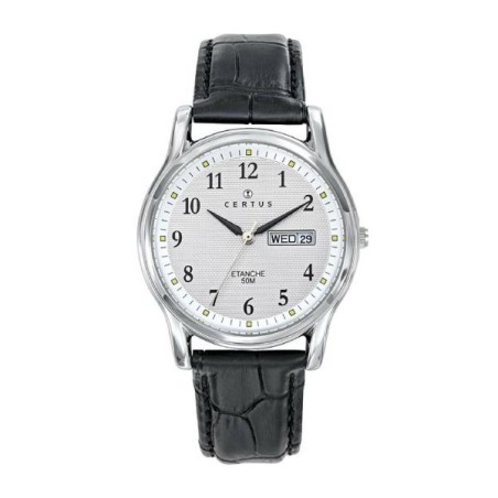 MONTRE CERTUS HOMME BRACELET CUIR NOIR FACON CROCO DATEUR A 3H