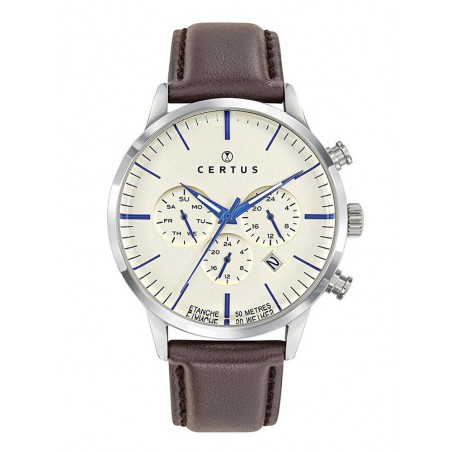Montre Certus homme Bracelet en cuir marron Détails bleus