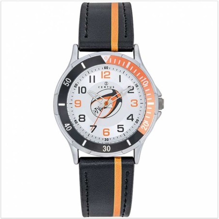 Montre Certus junior bracelet cuir noir et liseré orange motif ballon rugby
