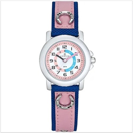 Montre Certus Junior fille cuir bleu et rose fer à cheval