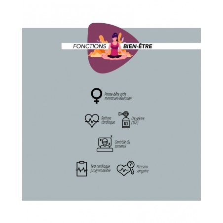Restez connecté au monde et à vous-même grâce à ses nombreuses fonctionnalités en matière de gestion et surveillance de temps, de votre santé et bien-être, de sécurité, et applications multiples.