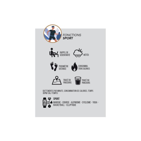 Montre connectée Mixte Smarty Energy Bracelet noir boitier rectangle