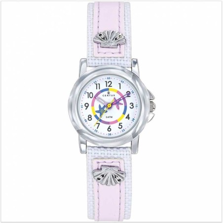 Montre enfant certus junior bracelet cuir blanc et rose avec coquillages