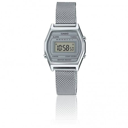 Ce modèle possède un bracelet acier inoxydable maille milanaise et un boitier en résine.