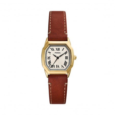 Montre femme fossil Harlow bracelet cuir marron cadran octogonal