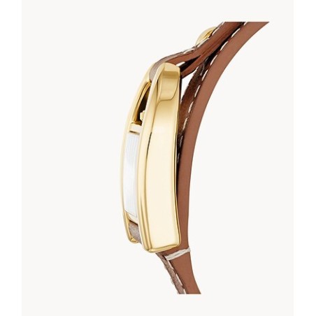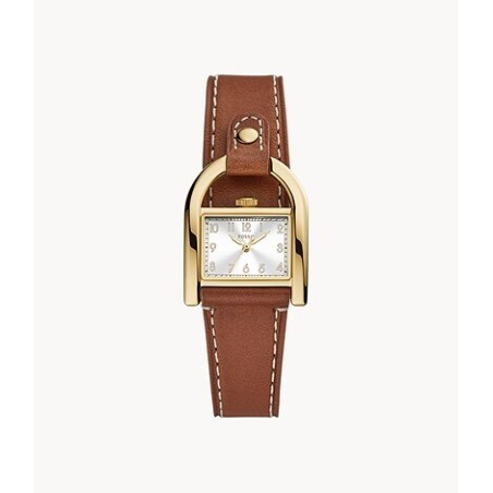 Montre femme fossil Harwell bracelet cuir marron cadran rectangle doré