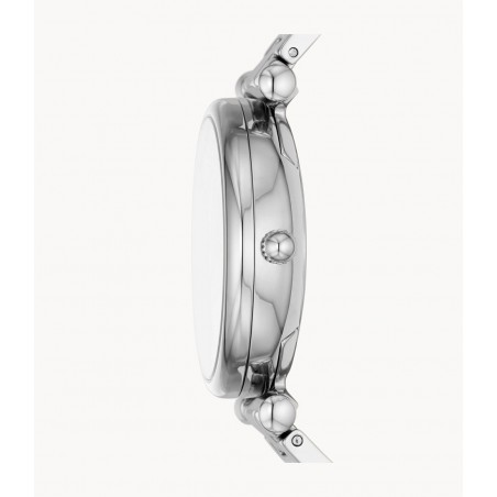 Le bracelet de cette montre en acier couleur argent affiche une maille fantaisie atypique et délicate.