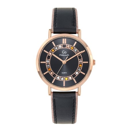 Montre Femme Go Girl Only bracelet cuir et cadran noir avec cristaux de couleurs