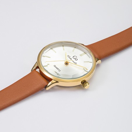 Montre Femme Go Girl Only bracelet simili cuir marron et boitier doré