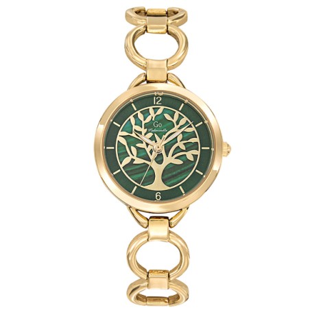 Montre Femme GO Mademoiselle Bracelet en acier doré et cadran vert avec arbre de vie