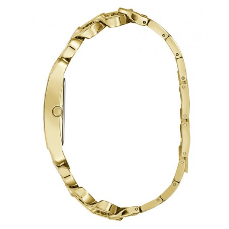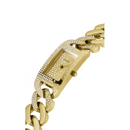 Elle est composée d'un boîtier de forme rectangulaire en acier doré orné de cristaux incolore.
