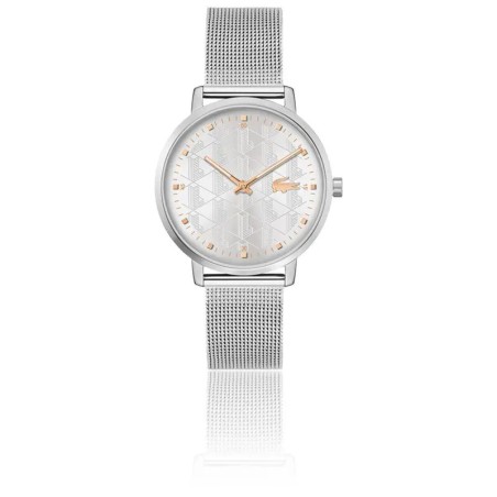 Montre femme Lacoste Crocorigin Bracelet argenté mailles milanaises cadran gris soleil