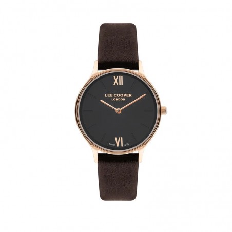 Montre Femme Lee Cooper en métal doré rose et cuir noir