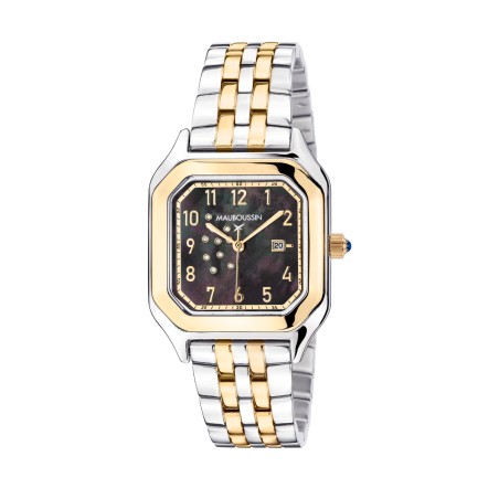 MONTRE FEMME MAUBOUSSIN BELO HORIZONTE CARRE CADRAN NACRE NOIRE EN ACIER BICOLORE