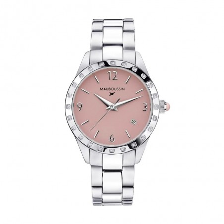Montre Femme Mauboussin Il est grand temps en acier argenté et cadrant rose