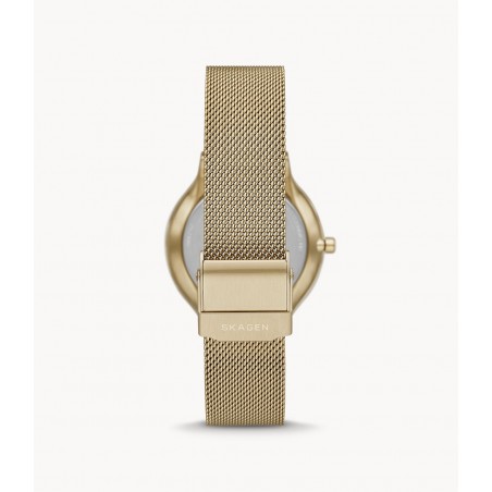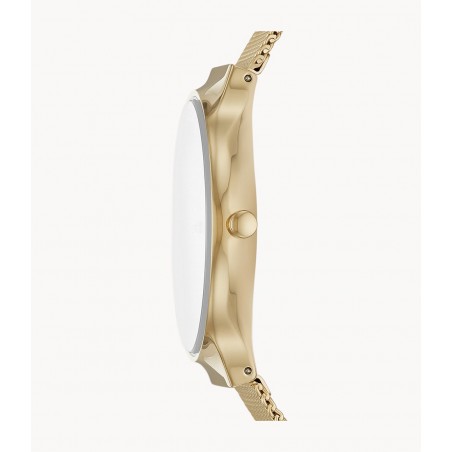 Dévoilant un subtil bracelet acier doré maille milanaise, la montre habillera votre poignet avec finesse et élégance.