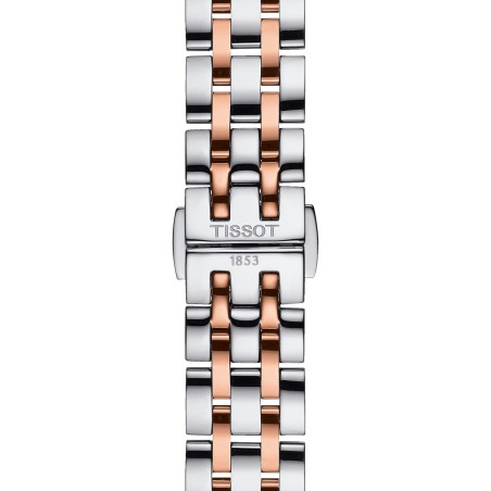 Son bracelet en acier bicolore possède un fermoir de type papillon avec boutons poussoirs. Son sublime boitier de 28mm doré rose est d’une finesse incroyable.