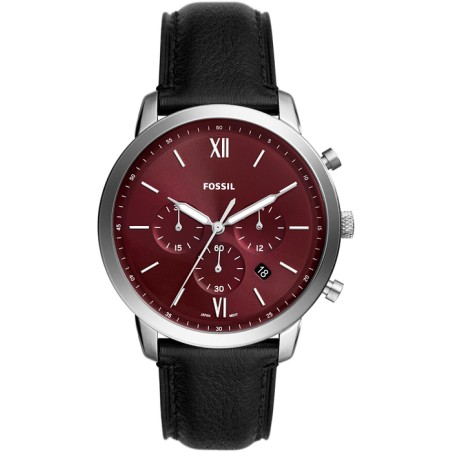 Montre Fossil Homme Neutra chronographe bracelet cuir noir fond rouge