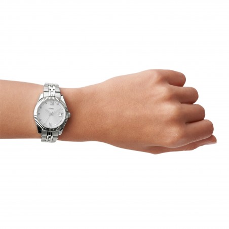 Dotée d'un bracelet en acier argenté avec une maille rétro, la montre vous révèle un boitier en acier rond de diamètre 32 mm.