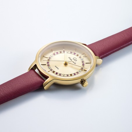 MONTRE GO BRACELET CUIR rouge BOITIER doré