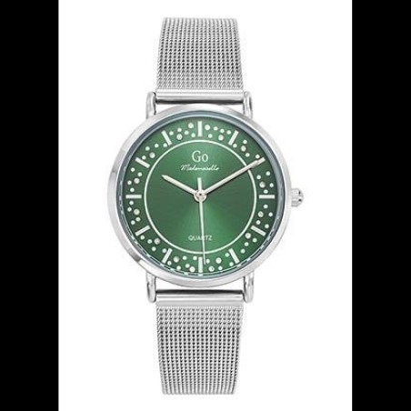 Montre Go femme bracelet acier argenté fond vert avec strass
