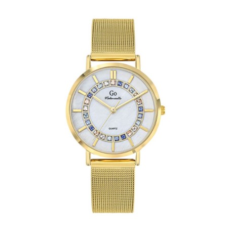 Montre Go femme bracelet acier maille milanaise doré et cadran nacre avec oxydes de couleurs