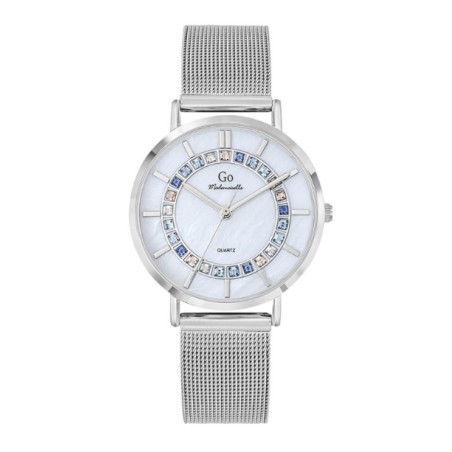Montre Go femme bracelet acier maille milanaise et cadran nacre avec oxydes de couleurs