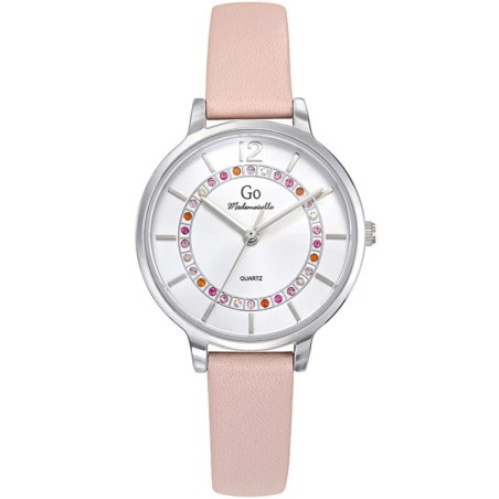 Montre Go femme bracelet cuir rose fond cadran argenté avec oxydes rose