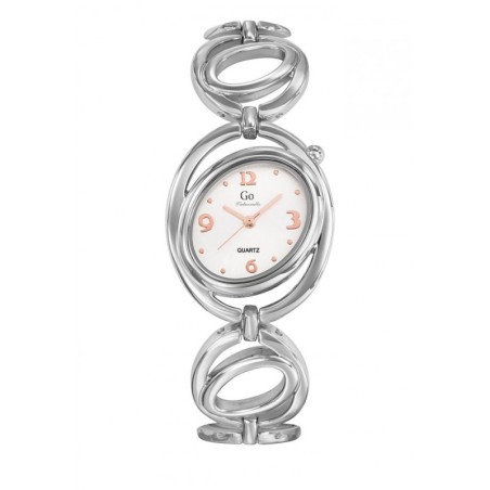 MONTRE GO GIRL ONLY BRACELET ACIER FANTAISIE BOITIER OVALE CADRAN BLANC INDEX DORE ROSE