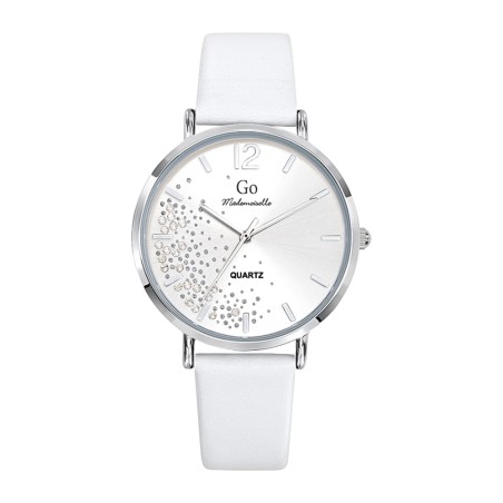 MONTRE GO GIRL ONLY BRACELET CUIR BLANC BOITIER ARGENTE CADRAN ARGENTE AVEC STRASS
