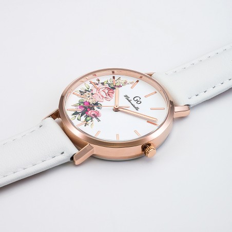 MONTRE GO GIRL ONLY BRACELET CUIR BLANC CADRAN BLANC AVEC FLEURS