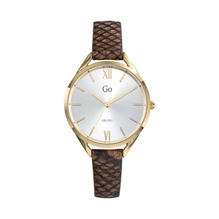 MONTRE GO GIRL ONLY BRACELET CUIR MARRON EFFET PEAU DE SERPENT CADRAN ARGENTE
