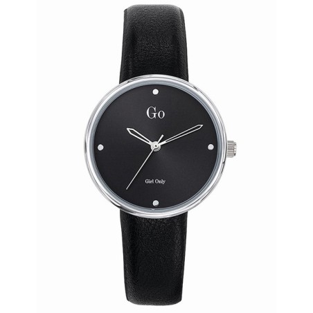 MONTRE GO GIRL ONLY BRACELET CUIR NOIR BOITIER ROND ARGENTE CADRAN NOIR