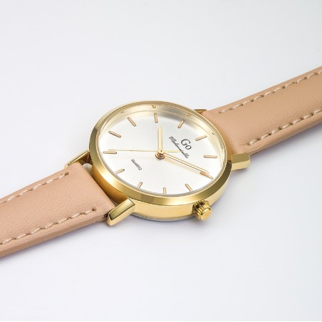 Montre GO GIRL ONLY Bracelet cuire beige et boitier doré