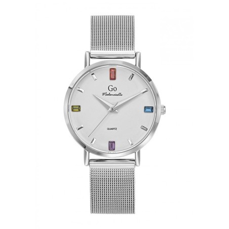MONTRE GO GIRL ONLY BRACELET MILANAIS ARGENTE CADRAN GRIS ARGENTE AVEC INDEX PIERRES COLOREES