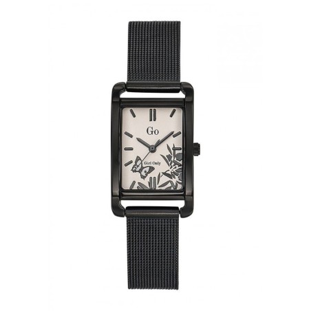 MONTRE GO GIRL ONLY BRACELET MILANAIS NOIR CADRAN ROSE MOTIF PAPILLON BOITIER RECTANGLE