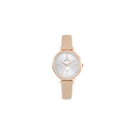 MONTRE GO MADEMOISELLE BRACELET CUIR BEIGE CADRAN ARGENTE AVEC STRASS ROSES