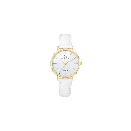 MONTRE GO MADEMOISELLE BRACELET CUIR BLANC AVEC SURPIQURES CADRAN BLANC