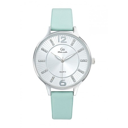 MONTRE GO MADEMOISELLE BRACELET CUIR BLEU BOITIER ARGENTE INDEX STRASS