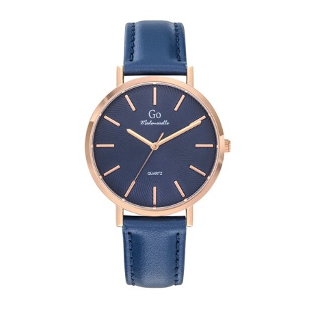 MONTRE GO MADEMOISELLE BRACELET CUIR BLEU MARINE AVEC SURPIQURES BOITIER DORE ROSE CADRAN BLEU NUIT