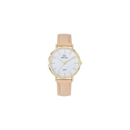 MONTRE GO MADEMOISELLE BRACELET CUIR ROSE AVEC SURPIQURES BOITIER DORE CADRAN NACRE
