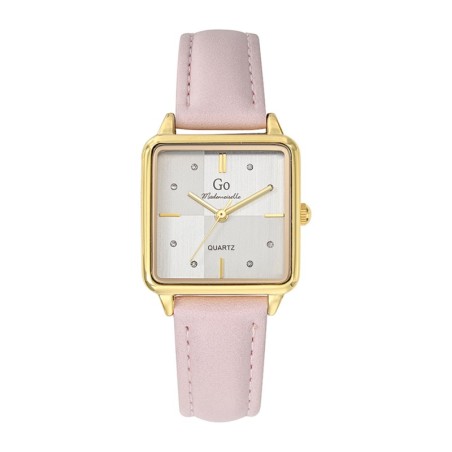 MONTRE GO MADEMOISELLE BRACELET CUIR ROSE AVEC SURPIQURESBOITIER CARRE DORE CADRAN ARGENTE