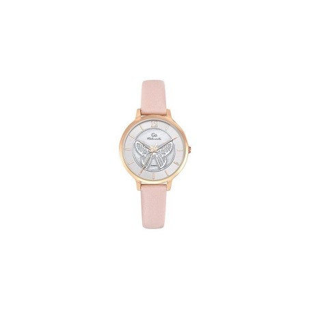 MONTRE GO MADEMOISELLE BRACELET CUIR ROSE BOITIER DORE ROSE CADRAN NACRE AVEC PAPILLON ARGENTE