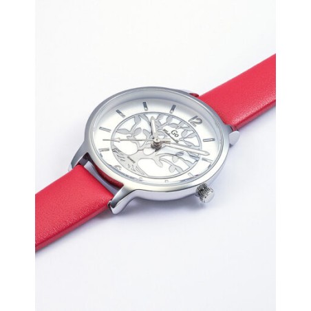 MONTRE GO MADEMOISELLE BRACELET CUIR ROUGE CADRAN GRIS AVEC ARBRE DE VIE ARGENTE