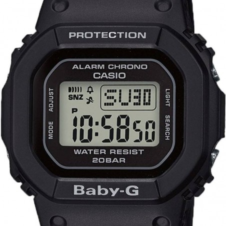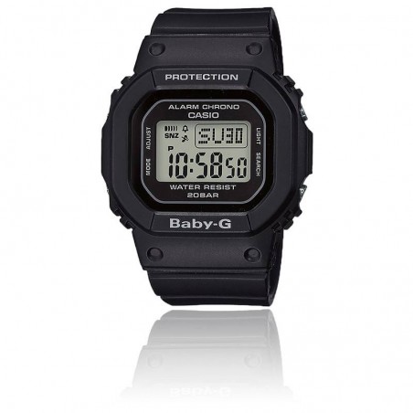 Issu de la collection BABY-G, ce modèle digital possède un boîtier de forme hexagonale de 40mm et un bracelet en résine noir.