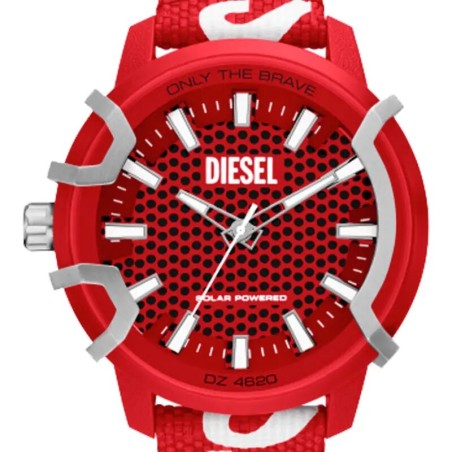 MONTRE HOMME DIESEL SOLAIRE EN TISSU ROUGE AVEC INDEX CHEMIN DE FER